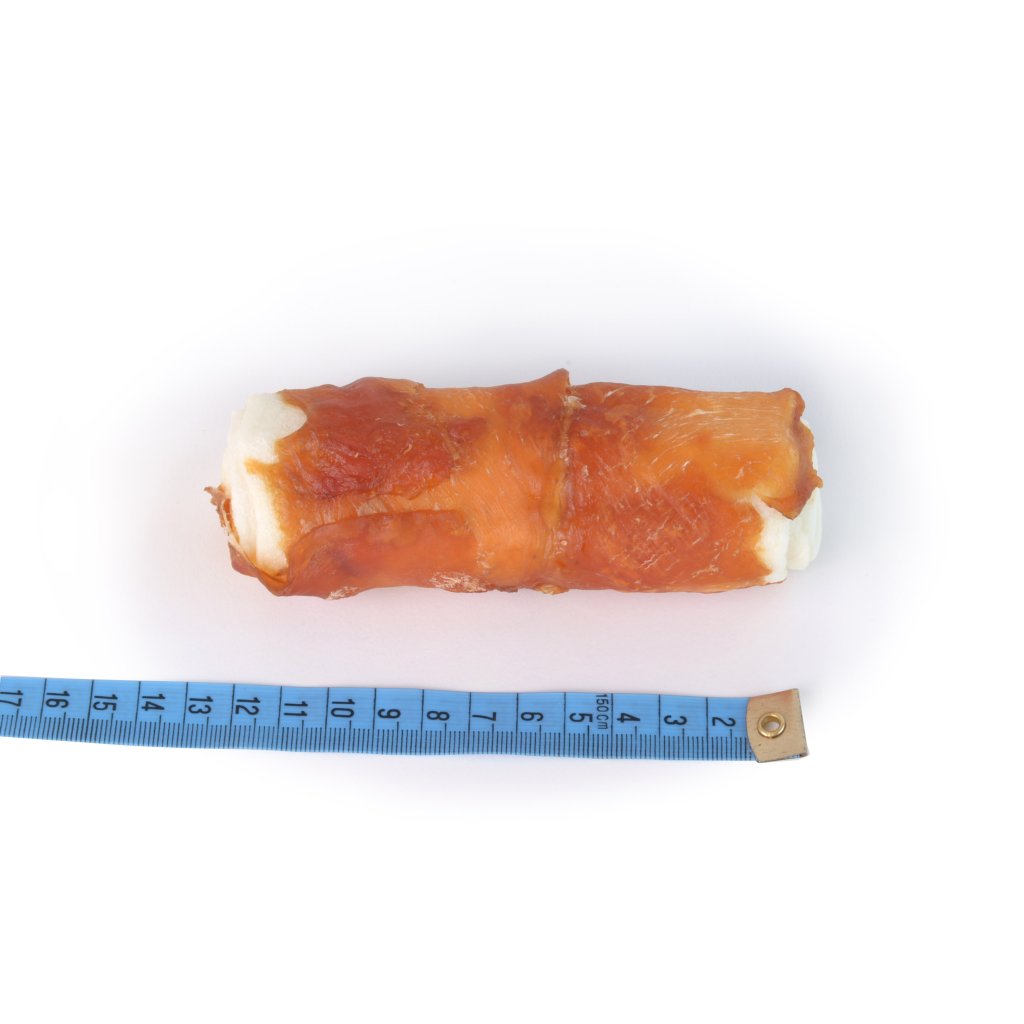 Složení: kuřecí maso, hovězí kůže, škrob, sorbitol, glycerin.