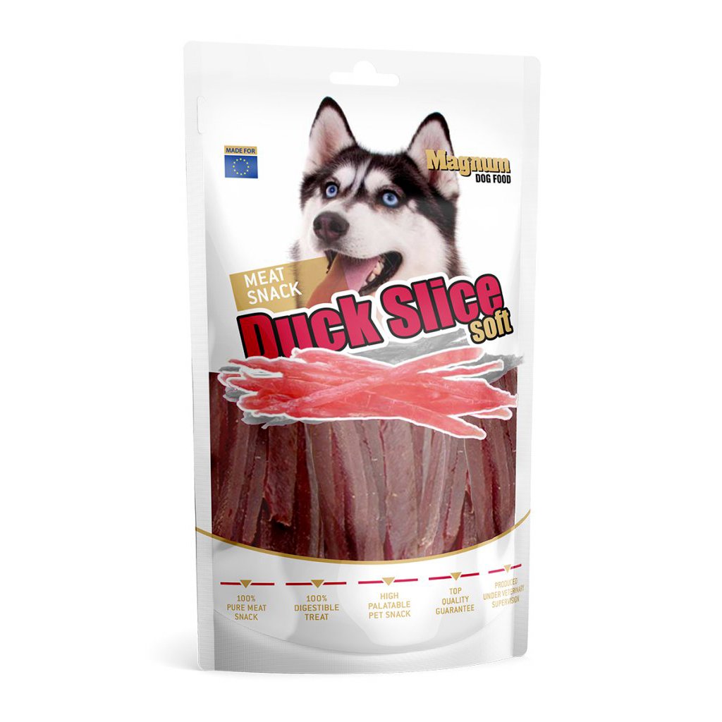 100% přírodní masová pochoutka pro malé, střední i velké psy. Měkké kachní pásky (délka cca 11 cm) jsou ideální odměnou za splněný povel. Slouží jako odměna při hře, výcviku nebo jako doplněk stravy při cestách. Nezatěžují organismus a je výborně stravitelný. Bez negativních účinků na zuby a dásně.