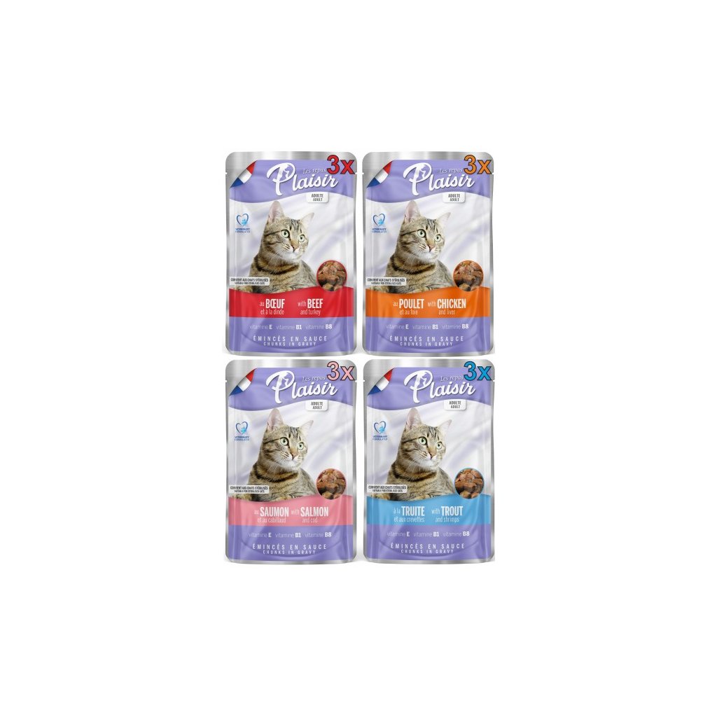 3x Plaisir hovězím a krůtím masem 100g - Kapsička Plaisir Adult pro dospělé kočky.